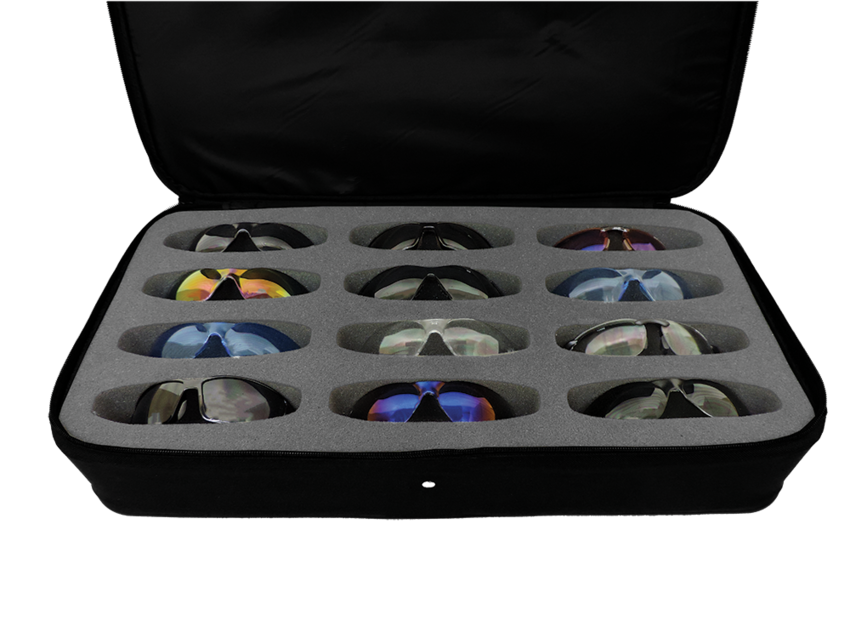 The GC12 was designed with convenience in mind. The inside features a soft foam padding with specialized cut-outs for 12 individual glasses. A zippered pocket on the front provides extra storage, while the removable, adjustable shoulder strap includes a moveable shoulder pad for increased comfort. It has a zippered closure and handles with hook-and-loop closure for added convenience.