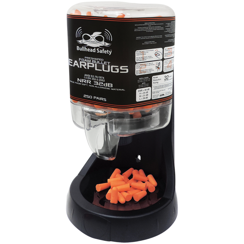 Bullhead Safety® Hearing Protection PVC-Free Polyurethane Foam NRR 32 dB Earplug Dispenser, 250 Pairs