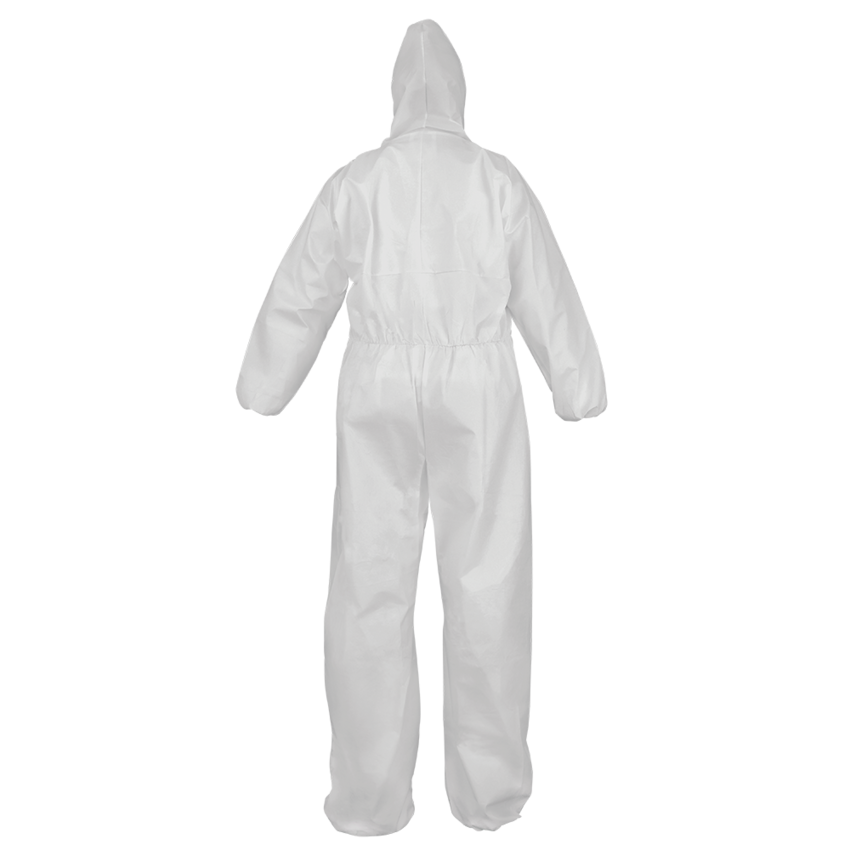 These non-woven coveralls are a great option for those in need of a durable disposable coverall that provides protection against light liquid splashes, debris, and dry particulates. They are constructed with low-lint white, premium, 55-gram anti-static microporous PE film-laminated material that is breathable. They feature a hood and elastic on the hood, ankles, waist, and wrists for a secured fit.