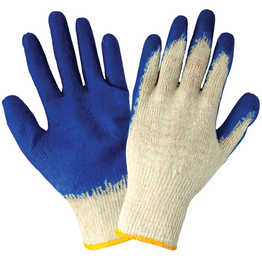 These economy gloves are constructed of natural colored, 10-gauge, medium-weight cotton/polyester string knit and features a blue rubber coating. These are an excellent choice for general purpose applications.