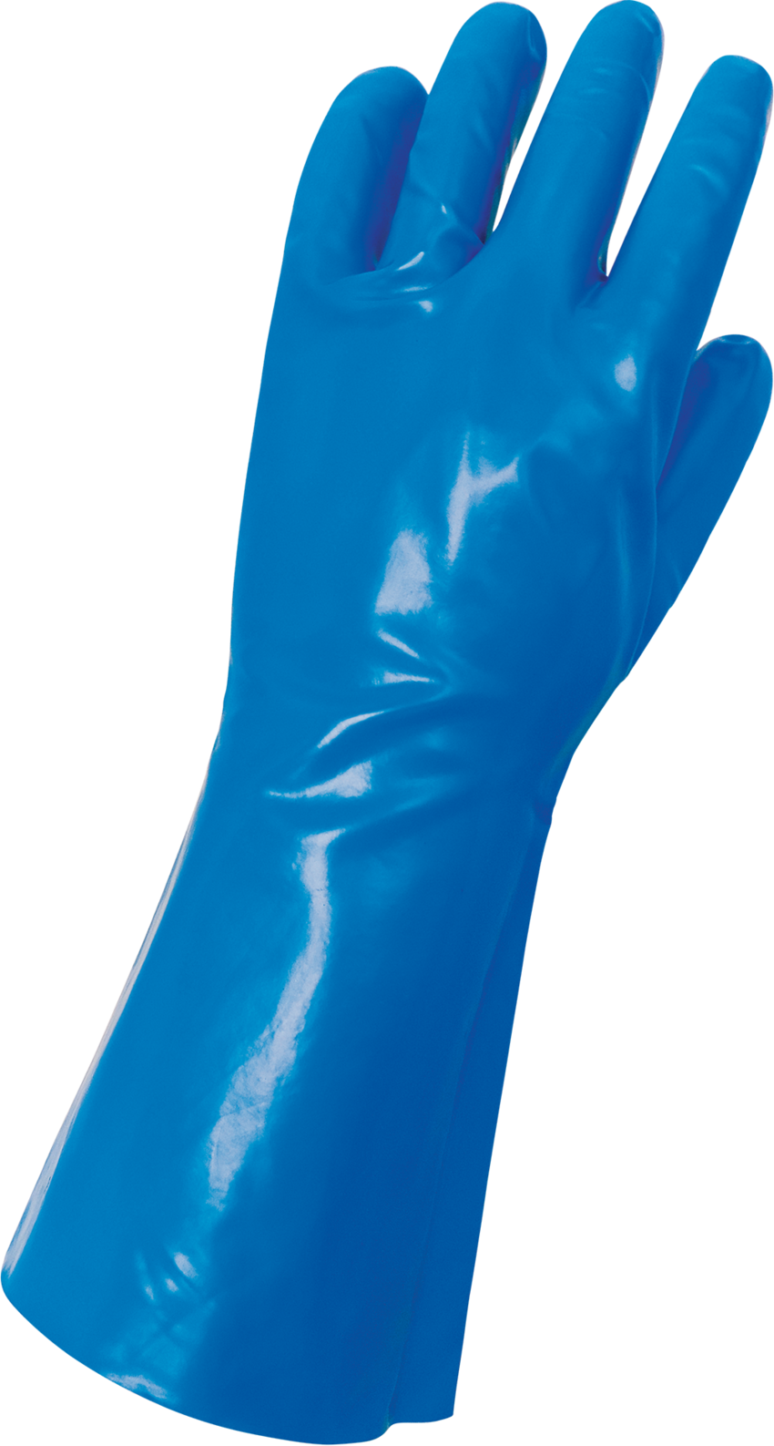 This extraordinary solvent-resistant glove features superior protection for handling some of the most difficult organic solvents including ketones, aromatic solvents, and chlorinated solvents. Designed with resistance toward high humid conditions, these unique gloves have an 11-mil thickness with blue PVA coated outside and nitrile inside. The finish is smooth and the glove is 13 inches in length. \nEach pair is individually packaged in a polybag. \n** PVA (Polyvinyl alcohol) is water-soluble and can break down easily in both water and alcohols. While the nitrile-coated interior provides an extra protection barrier, this glove is not recommended for use with alcohols, acids, bases, or chemicals containing a high percentage of water.